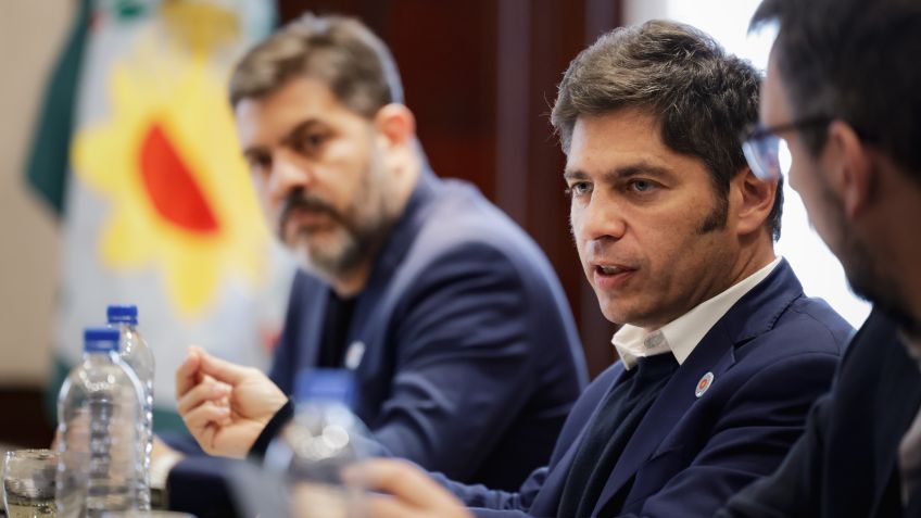 El gobernador Axel Kicillof encabezó este jueves junto al presidente del Banco Provincia, Juan Cuattromo, una reunión con intendentes bonaerenses que firmaron contratos de leasing para la compra de bienes de capital en sus municipios. Fue en el Salón de los Acuerdos de Casa de Gobierno, donde además se suscribieron préstamos para los distritos de General Viamonte, Coronel Pringles y Saladillo.