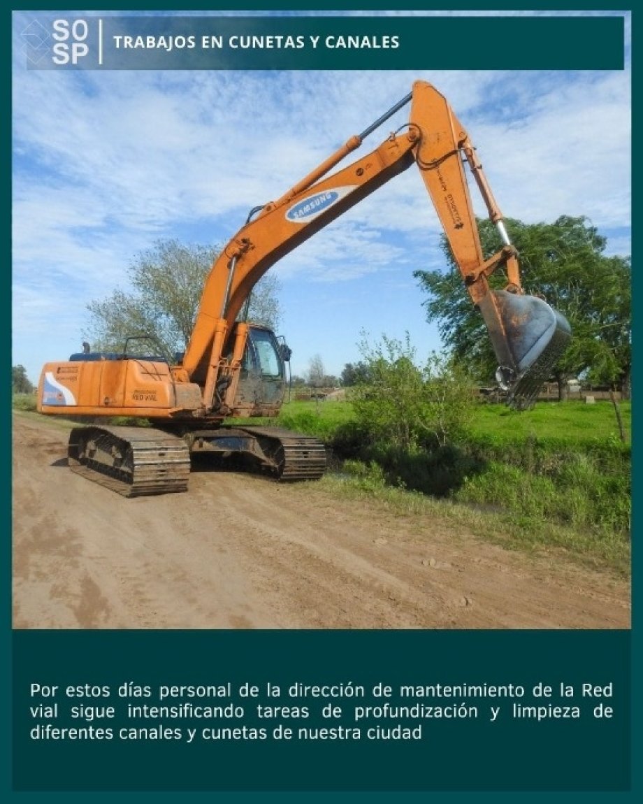 Por estos días personal de la dirección de mantenimiento de la Red vial sigue intensificando tareas de profundización y limpieza de diferentes canales y cunetas de nuestra ciudad.