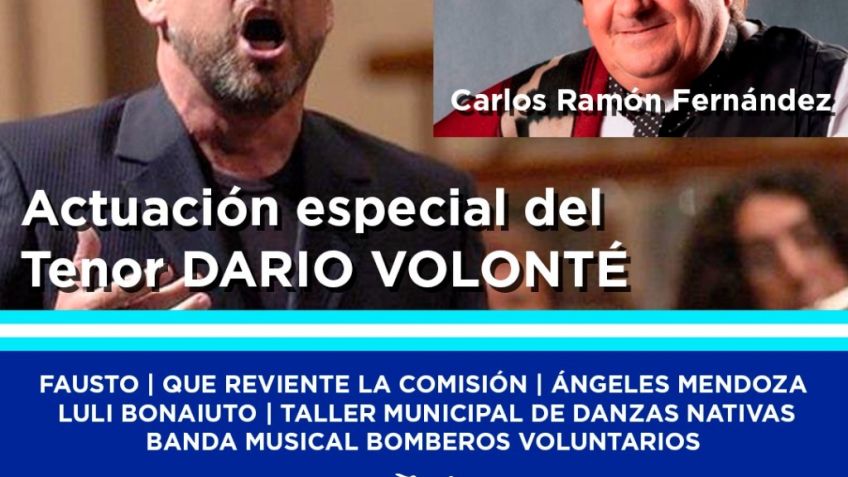 En Saladillo contaremos con la presencia y actuación del Tenor Darío Volonté, Carlos Ramón Fernández y de Artistas Saladillenses junto a la Banda de Bomberos Voluntarios.