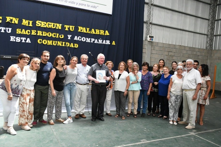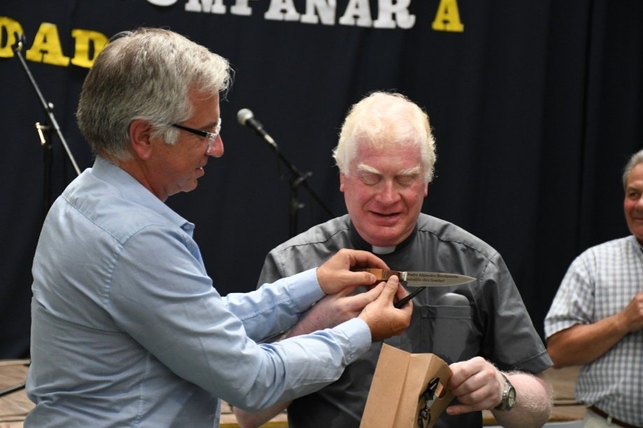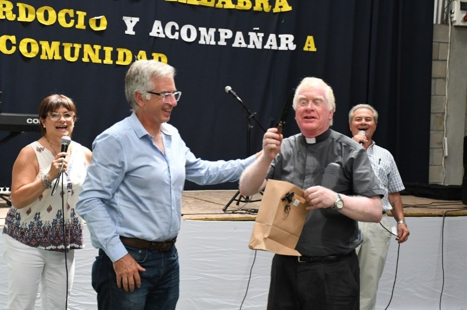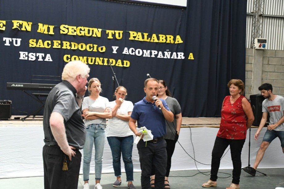 El Intendente Interino Dr. Alejandro Armendáriz se dirigió a todos los presentes realizando la entrega de un presente al Padre Alejandro.