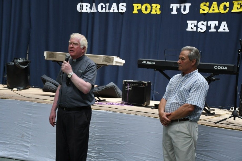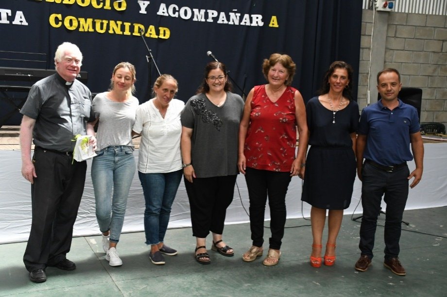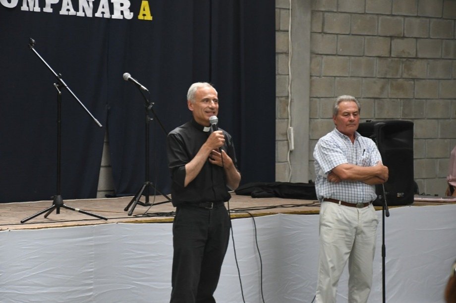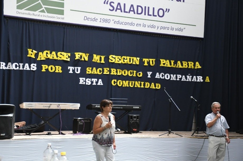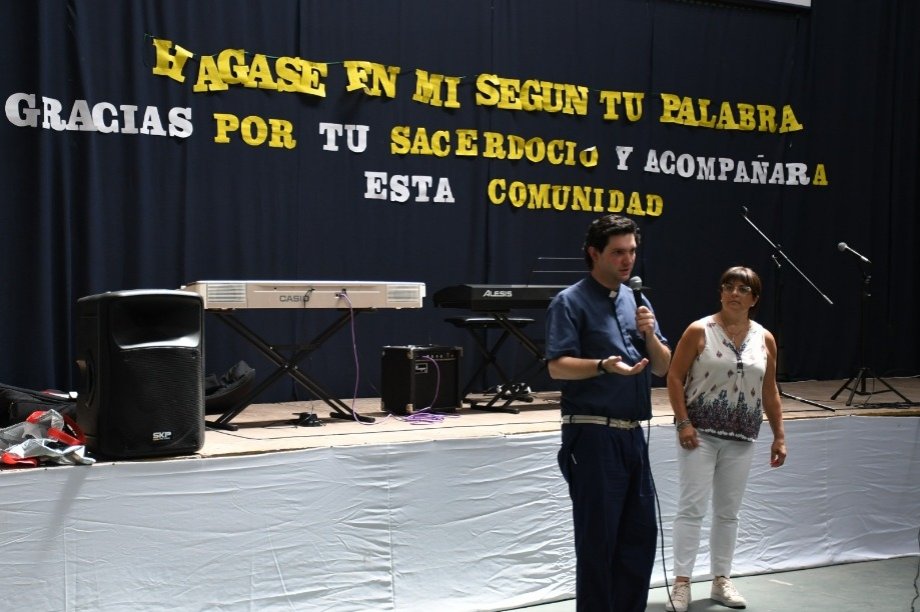 Luego de realizada la misa de despedida del Padre Alejandro Boudgouste, en las instalaciones del Salón de Usos Multiples del Centro de Formación Rural tuvo lugar un almuerzo de reconocimiento a su misión sacerdotal en nuestra comunidad durante estos cuatro años en la Parroquia Nuestra Señora de la Asunción.