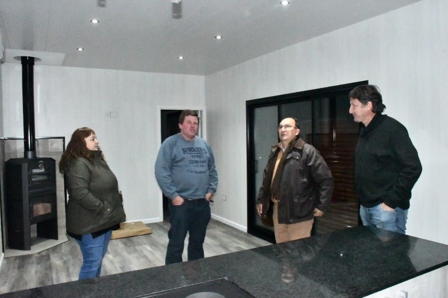 El Intendente José Luis Salomón junto al Secretario de Desarrollo Local Vladimir Wuiovich visitaron a Gustavo y a Mariela en su local de Ruta 205. Cabe señalar que El Taladro es una de las empresas locales que adquirió lotes en el SIPSA II donde empezará a construir las naves para la producción de sus módulos.