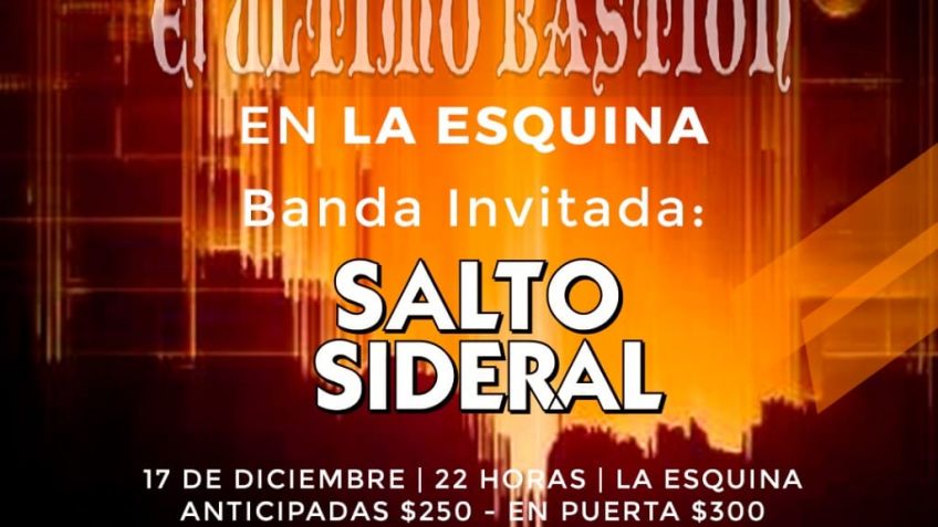 El próximo viernes 17 de diciembre se presentará en La Esquina la banda local "El último bastión", con la participación de la banda invitada de la localidad de General Alvear "Salto Sideral".