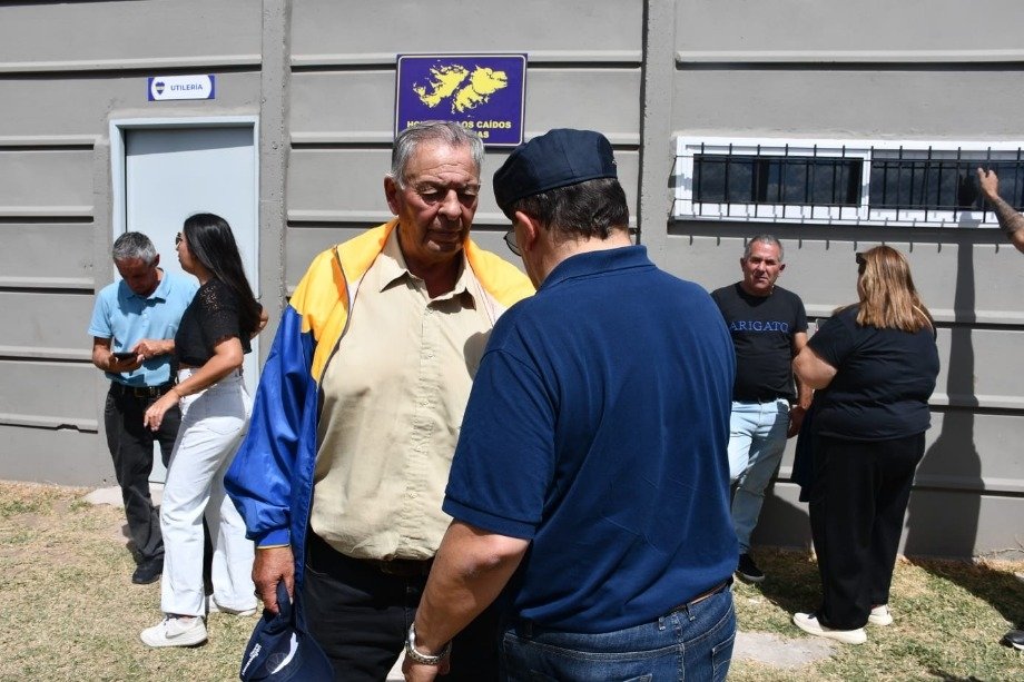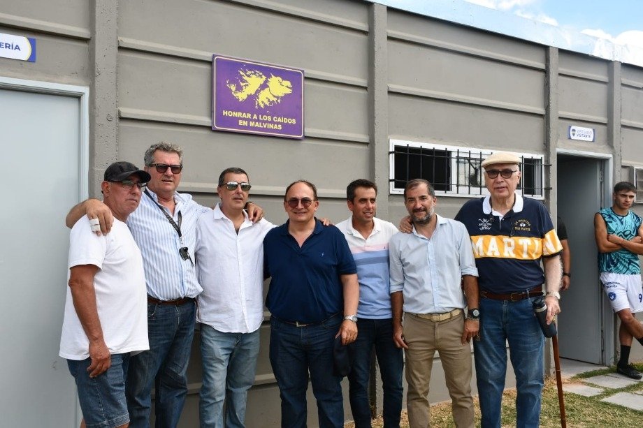 Para finalizar, hubo una foto colectiva de todos los presentes y el descubrimiento del emblema de las Islas Malvinas en el sector de los vestuarios con la presencia del Veterano de Guerra y Héroe de Malvinas Guillermo Ni Coló.