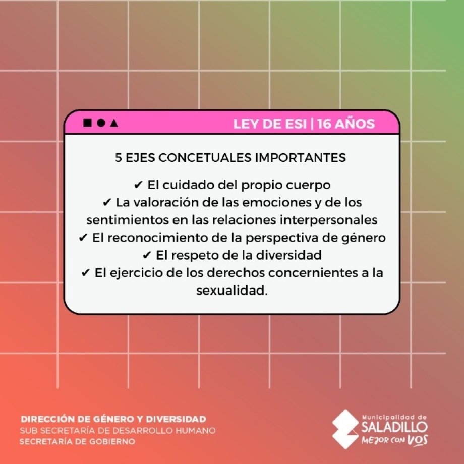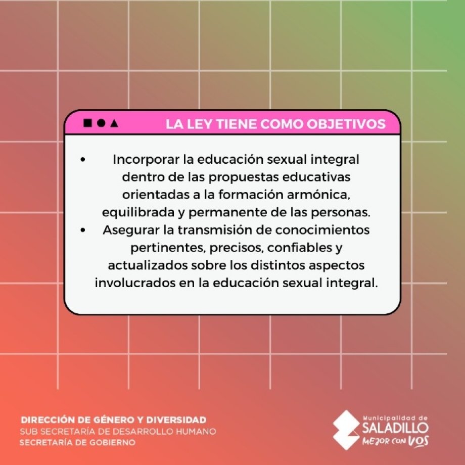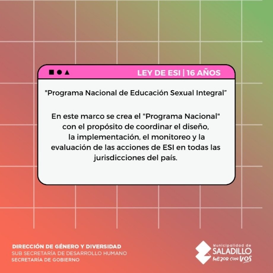 La Ley de Educación Sexual Integral constituye un espacio sistemático de enseñanza y aprendizaje que comprende contenidos de distintas áreas curriculares, adecuados a las edades y etapas de desarrollo de las personas desde el Nivel Inicial hasta la Formación Docente.