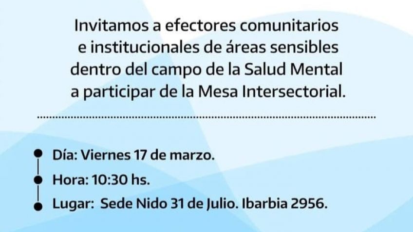 Invitamos a efectores comunitarios e institucionales de áreas sensibles dentro del campo de la Salud Mental a participar de la Mesa Intersectorial.