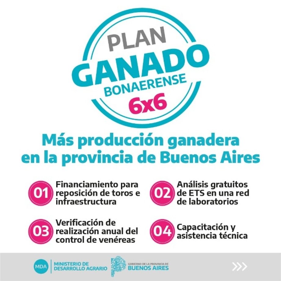Desde la Secretaría de Desarrollo Local de la Municipalidad de Saladillo se informa que a través del Ministerio de Desarrollo Agrario de la Provincia de Buenos Aires se lanzo el Plan Ganadero Bonaerense 6x6. Este plan busca fortalecer la producción ganadera y seguir avanzando en la prevención y erradicación de las enfermedades venéreas en la PBA.