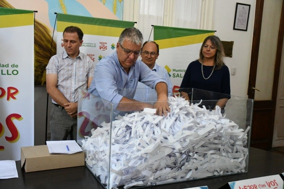 En las instalaciones del Salón Sesquicentenario, y con la presencia de un escribano, se realizó el sorteo que beneficia a 20 contribuyentes que se encuentran al día con el pago de las tasas municipales en nuestra ciudad. También se seleccionó a otros 10 como suplentes y se estará haciendo entrega de un total de $1.070.000 en órdenes de compra.