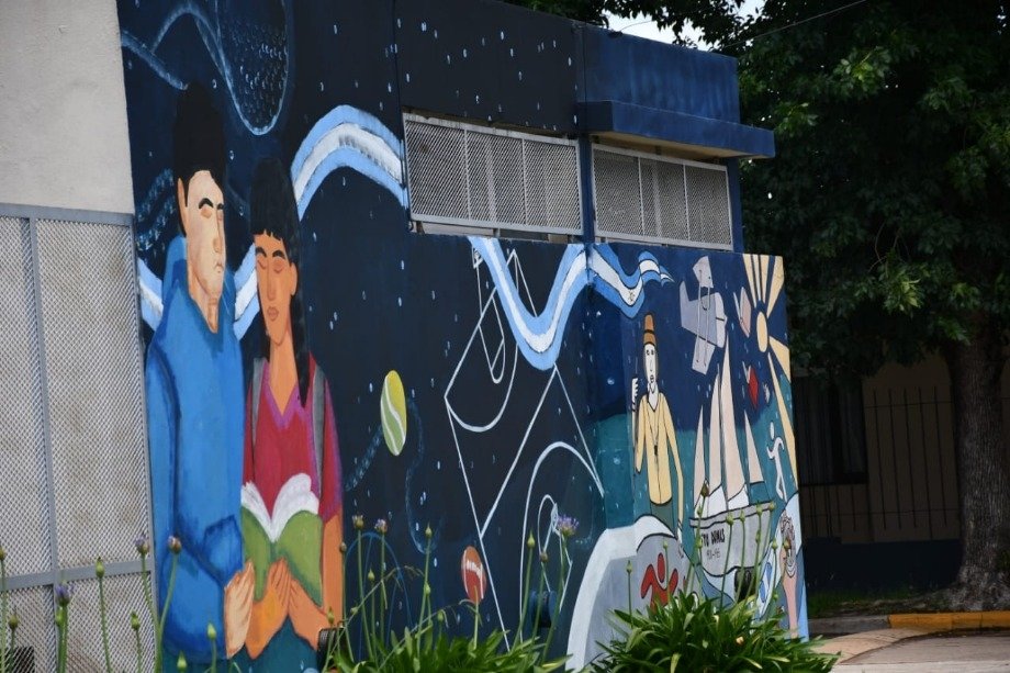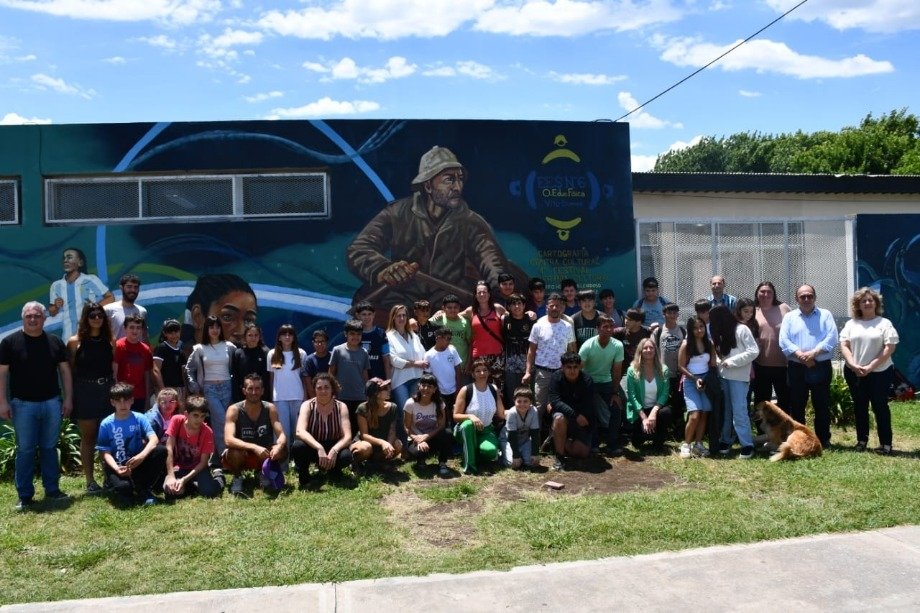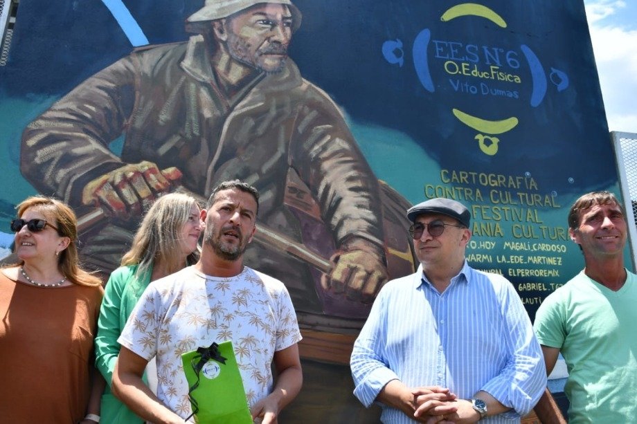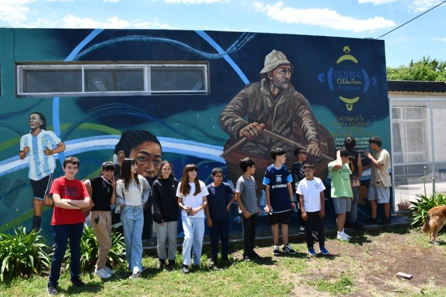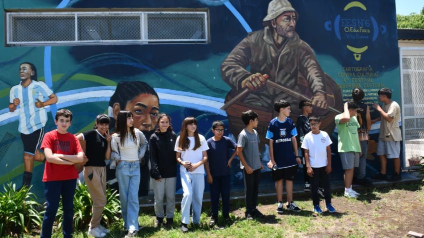 Frente a la Escuela Secundaria 6 Vito Dumas, se realizó la inauguración del mural que llevó a cabo el equipo de Cartografía Contracultural en el marco del Cuarto Encuentro de Muralismo y Arte Público.