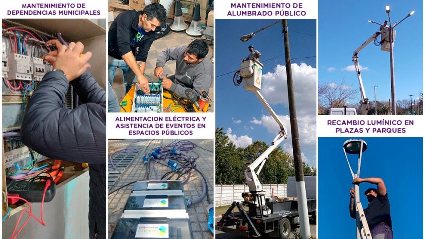 El área de mantenimiento eléctrico, mediante sus diferentes cuadrillas realiza a diario tareas de mejoras del alumbrado público, recambio lumínico plazas y parques, mantenimiento de dependencias municipales, colaboración mediante trabajos de grúa a distintas instituciones y asistencia a diversos eventos entre otros.