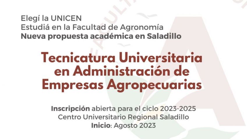 Se encuentra abierta la inscripción al ciclo 2023-2025, para cursar en el Centro Universitario Regional Saladillo la Tecnicatura en Administración de Empresas Agropecuarias, dependiente de la Facultad de Agronomía UNICEN.