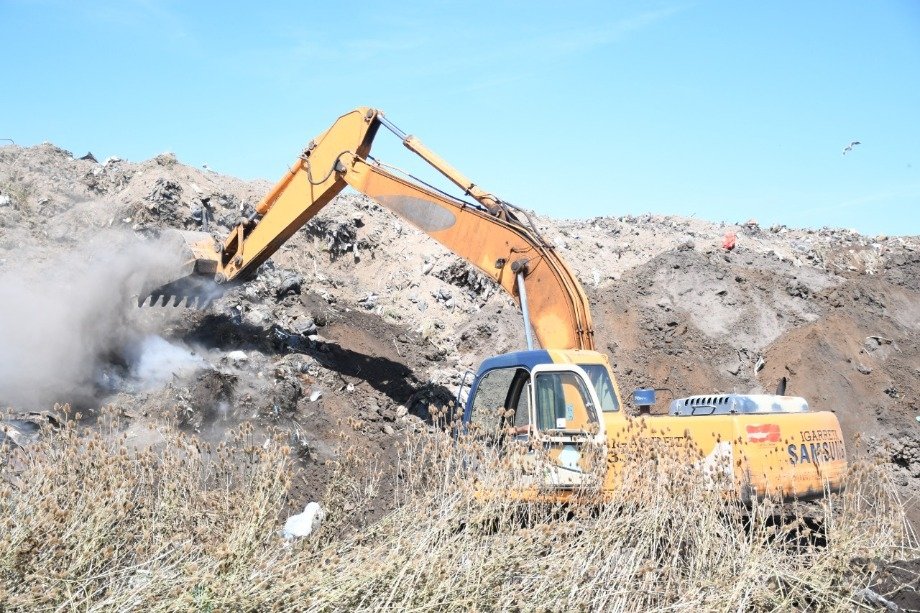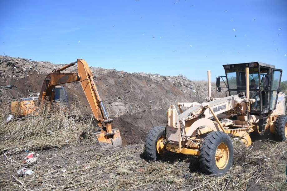 Durante toda la jornada de ayer continuaron los trabajos en el predio del basural que demandaron una gran cantidad de movimiento de volúmenes de tierra en diferentes sectores del mismo.