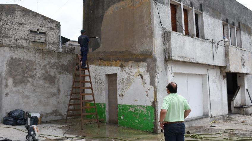 Allí se lleva adelante la limpieza de paredes con hidro lavadora.