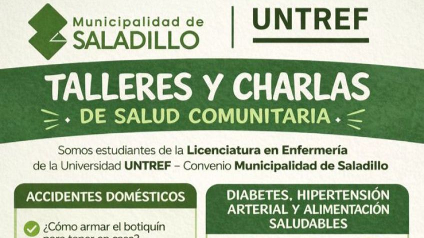 Desde la Dirección de Salud Pública de la Municipalidad de Saladillo se invita a la comunidad a participar de una actividad de promoción y prevención que será desarrollada por estudiantes de la Licenciatura en Enfermería.