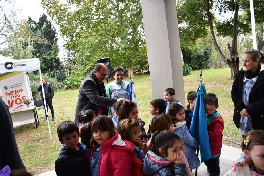 Luego del ingreso de las banderas de ceremonia de los establecimientos educativos Escuela Primaria 14 y el Jardín de Infantes El Trencito Musical, se entonaron las estrofas del Himno Nacional y Alfredo Elizegaray realizó la lectura religiosa. Posteriormente hubo entrega de reconocimientos para quienes fueron delegados durante estos 40 años de Democracia en ese lugar.