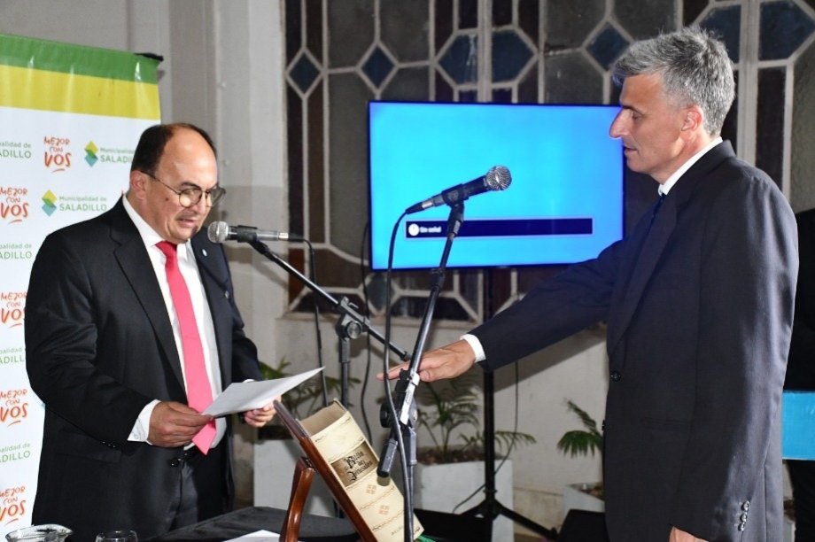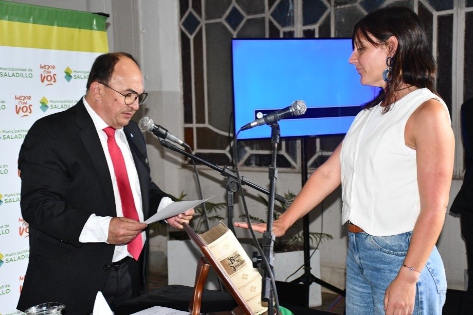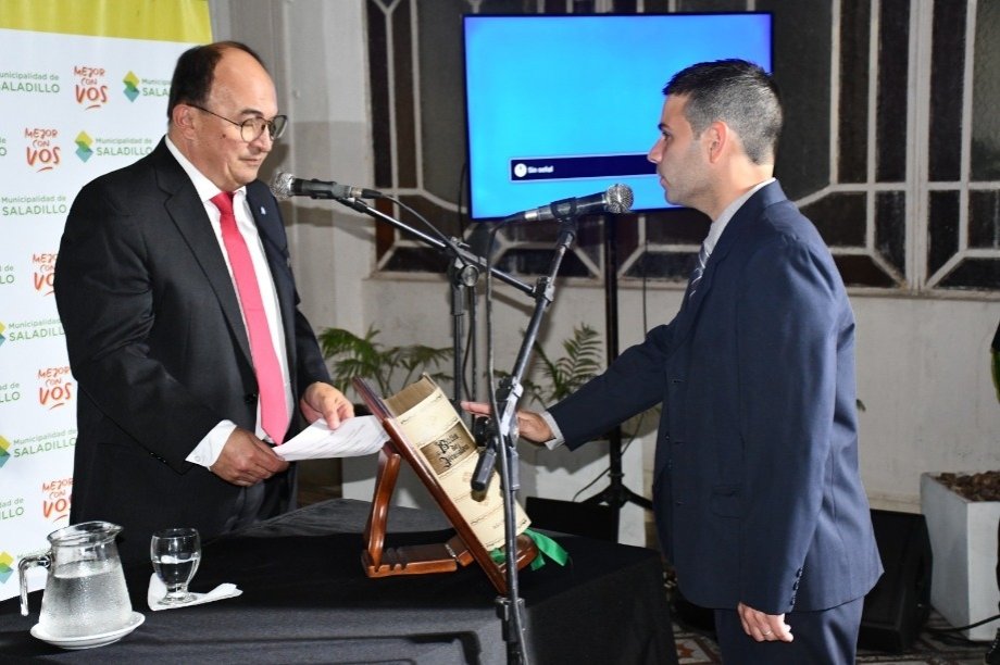 Se llevó a cabo en la tarde noche de ayer miércoles 10 de diciembre en el hall del Palacio Municipal el Acto de Juramento de los nuevos Integrantes del Gabinete integrando el equipo de gestión local. Así, prestaron el juramento correspondiente la Profesora Victoria Irañeta como Secretaria de Desarrollo Local, Mauricio Martínez como Delegado en la localidad de Saladillo Norte y Victor Mietta como Contador Municipal.