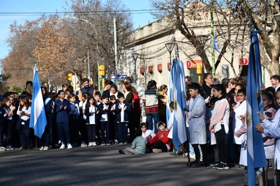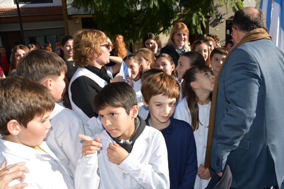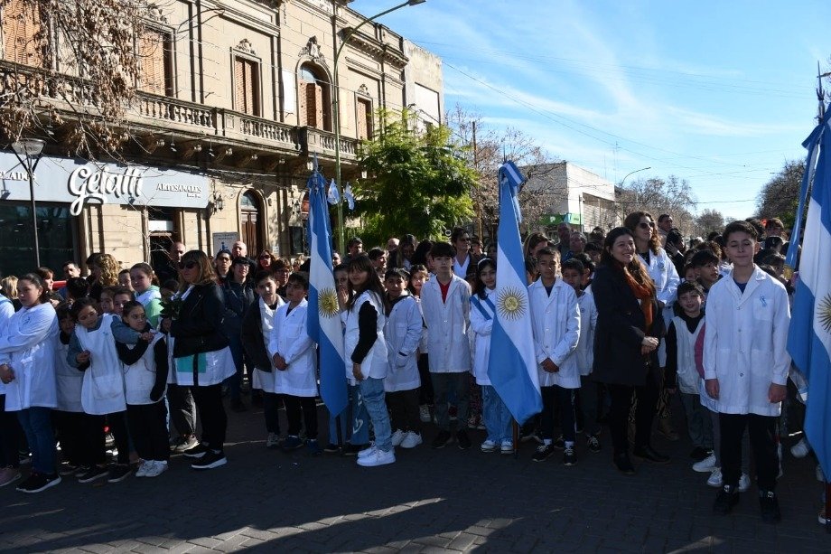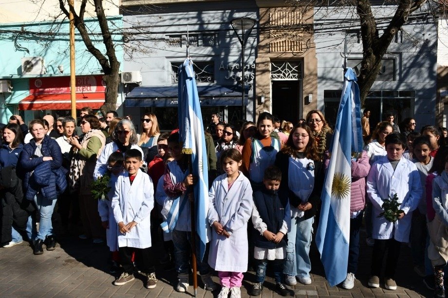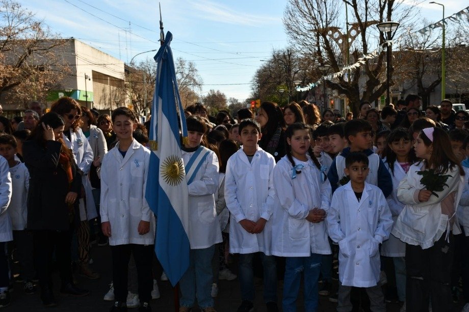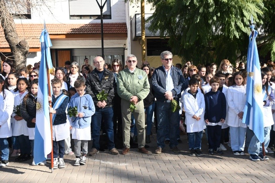 El Himno Nacional estuvo a cargo del cantautor local Gustavo Madeja, se realizó la ofrenda de laureles y hubo palabras de docentes, el Intendente Municipal Ing. José Luis Salomón y el Veterano de Guerra y Héroe de Malvinas Guillermo Ni Coló.
