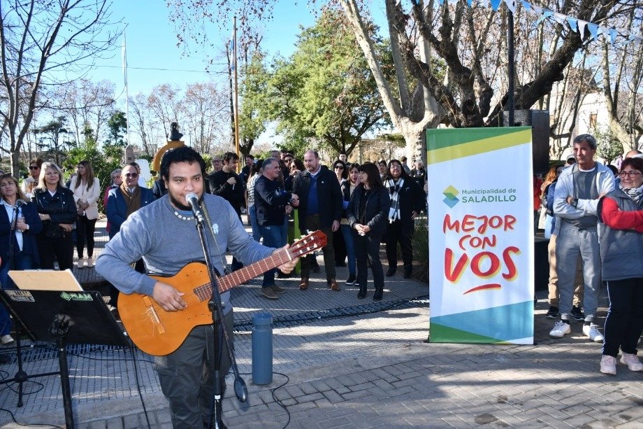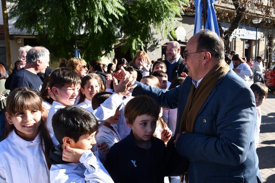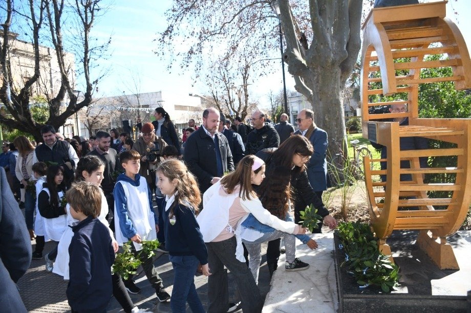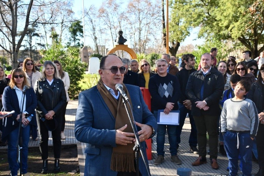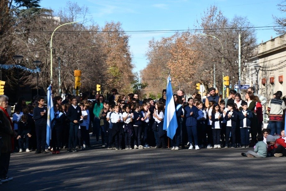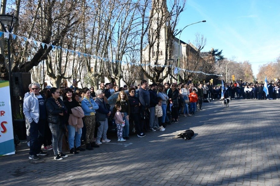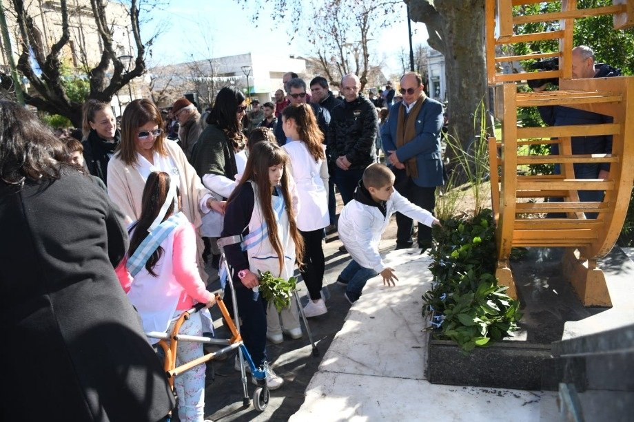 El Himno Nacional estuvo a cargo del cantautor local Gustavo Madeja, se realizó la ofrenda de laureles y hubo palabras de docentes, el Intendente Municipal Ing. José Luis Salomón y el Veterano de Guerra y Héroe de Malvinas Guillermo Ni Coló.