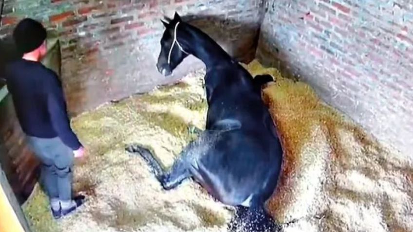 A través de sus redes sociales, la familia denunciante compartió los videos de la cámara de seguridad e imágenes donde se observa que el hombre denunciado se acerca al caballo con una jeringa y luego el animal empieza a temblar hasta caer tumbado al suelo, mientras el cuidador saca fotos con su celular.INYECCI�N EN EL CUELLO