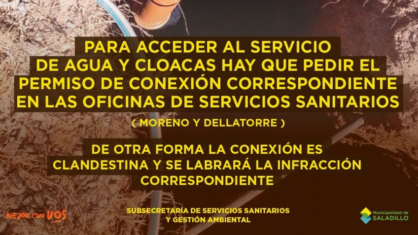 Para acceder al servicio de agua y cloacas hay que pedir el permiso de conexión correspondiente en las oficinas de servicios sanitarios (Moreno y Dellatorre)