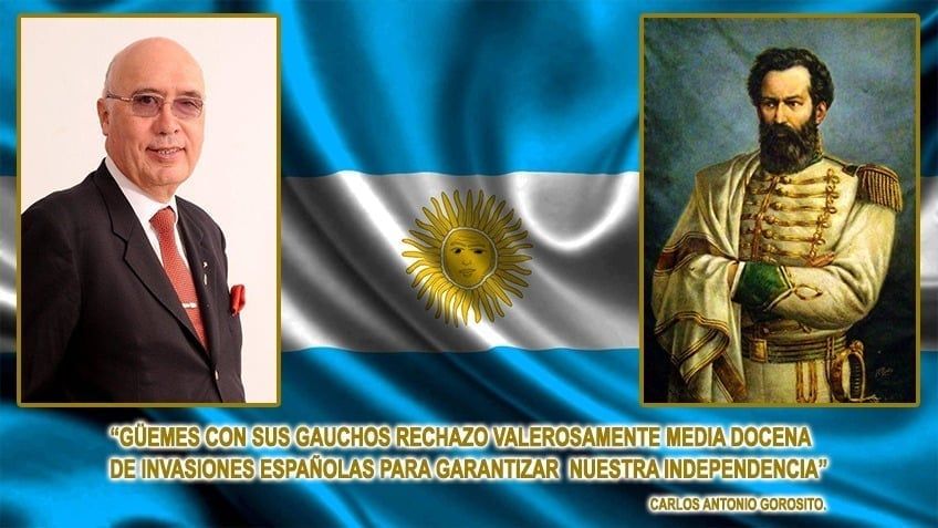 "El poeta león benarós escribió: 'si no fuera por güemes/yo les aseguro/nos hubiera tocado/destino duro'. Él y sus gauchos fueron esenciales para detener el avance de los españoles. Güemes es uno de los grandes héroes de nuestra independencia", expresó Carlos Antonio Gorosito.
