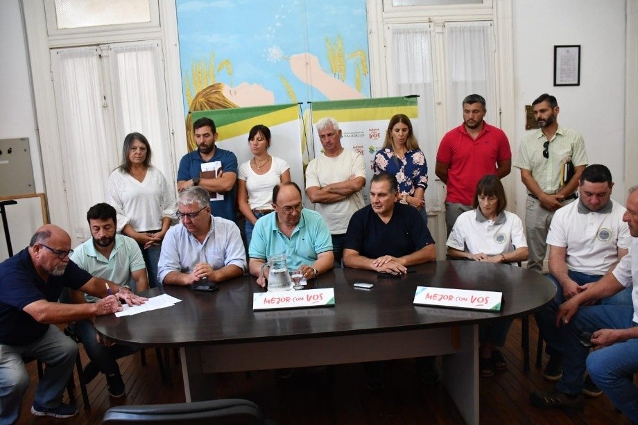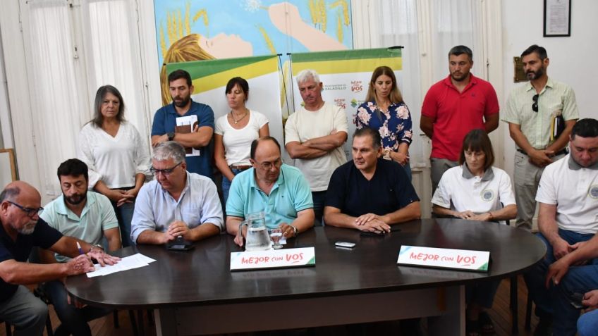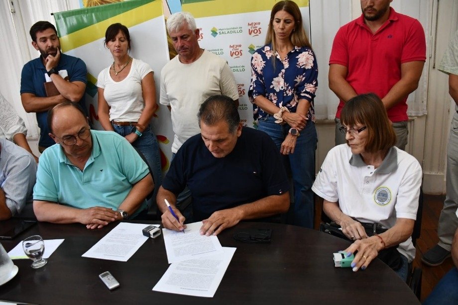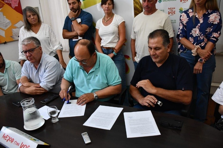 El Intendente Municipal Ing. José Luis Salomón junto con el Secretario de Hacienda Contador Gustavo Ramundo, funcionarios del equipo de gobierno de gestión local, y las representaciones gremiales del Sindicato de Trabajadores Municipales y UPCN Unión del Personal Civil de la Nación anunciaron el acuerdo de la negociación paritaria para los trabajadores municipales de Saladillo.