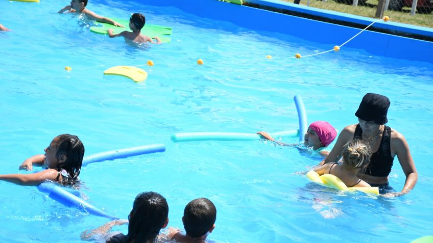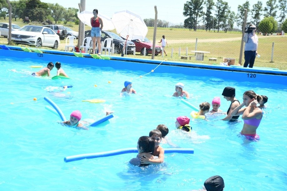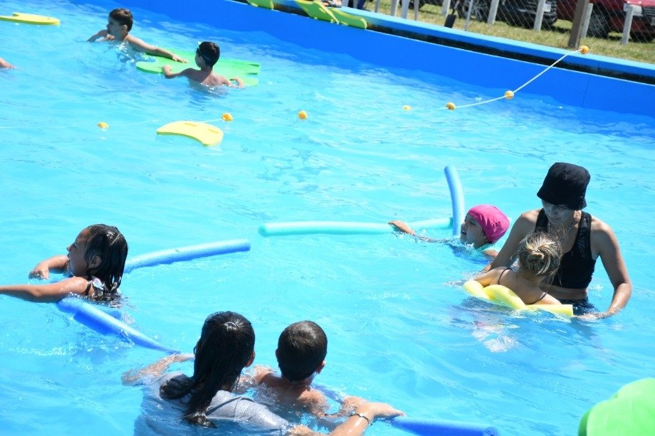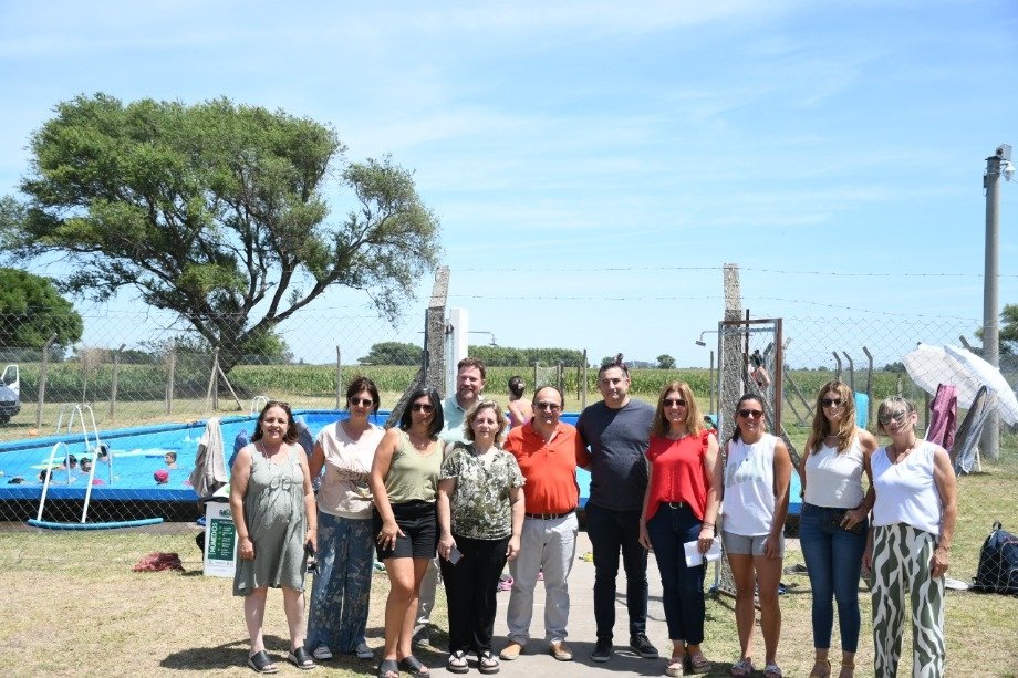 El Intendente Salomón junto con la Inspectora Jefe Distrital Profesora Fernanda Catullo participó de la apertura del Programa Provincial denominado Escuelas Abiertas en Verano que se desarrolla en el natatorio del predio del aeródromo local.