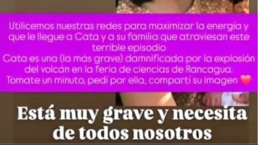 La comunidad educativa de la Escuela de Rancagua, familiares y amigos de Cata impulsan cadenas de oración por Cata, la niña gravemente herida tras una explosión durante una Feria de Ciencias en una Escuela de Rancagua en el partido de Pergamino. "No importa de la religión que seas, Cata nos necesita. Está muy grave", dicen los mensajes en redes.