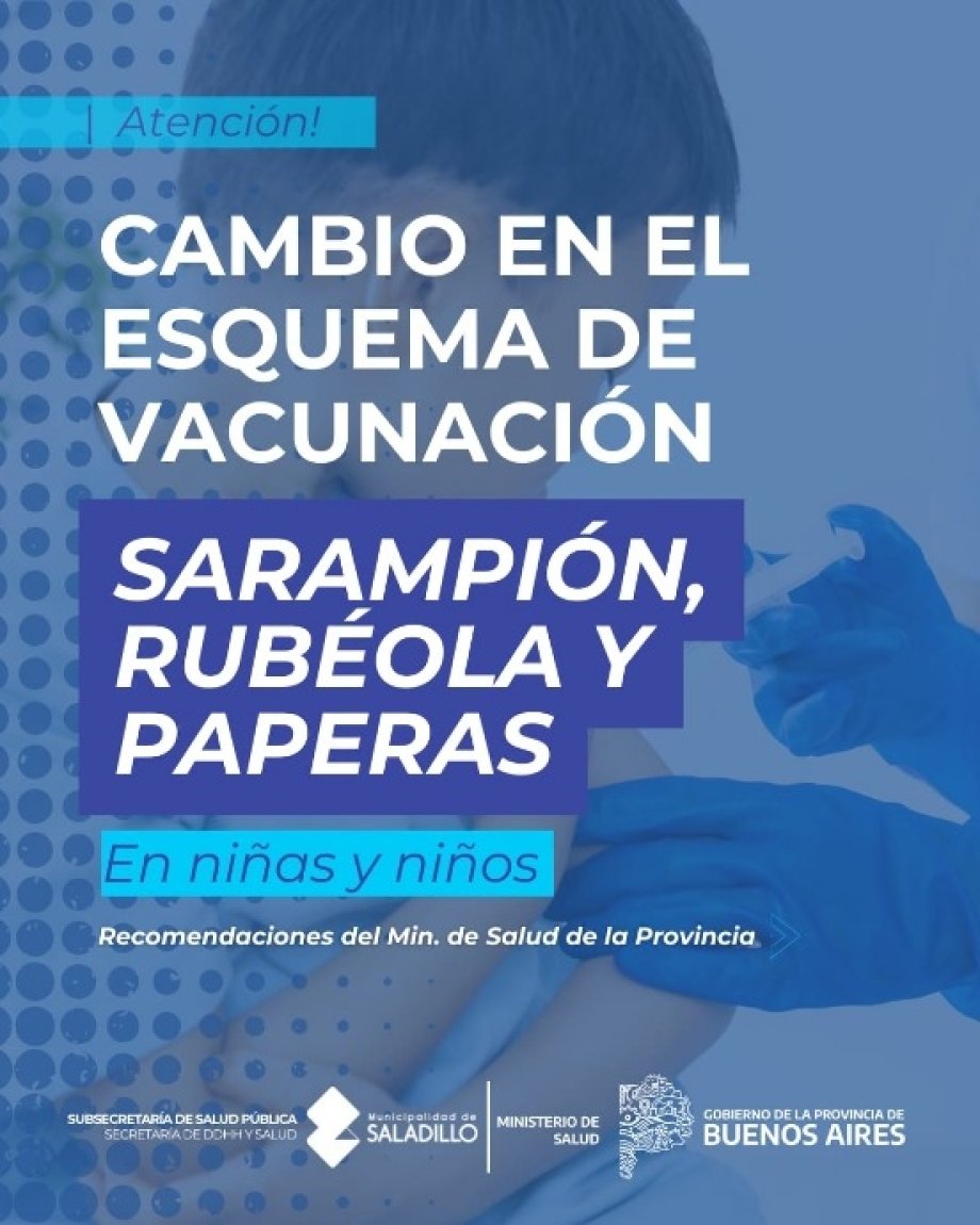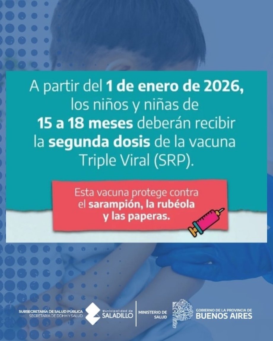 Desde la Dirección de Salud Pública Comunitaria se comparten novedades sobre el cambio en el esquema de vacunación contra sarampión, rubéola y paperas en niñas y niños de 15 a 18 meses, quienes deberán recibir la segunda dosis de la vacuna triple viral (SRP).
