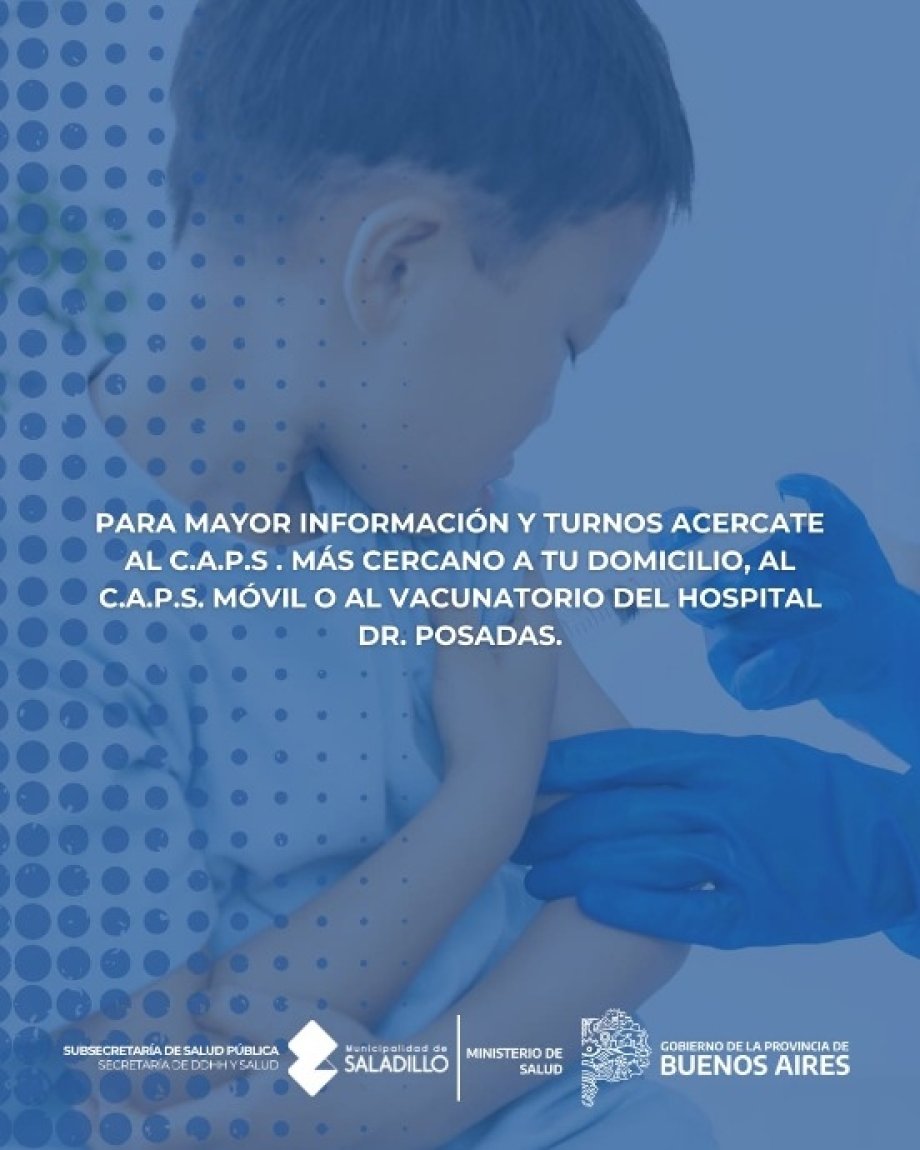 Para mayor información o para acceder a turnos, acercate al C.A.P.S. más cercano a tu domicilio o al Vacunatorio del Hospital Zonal Dr. Posadas.
