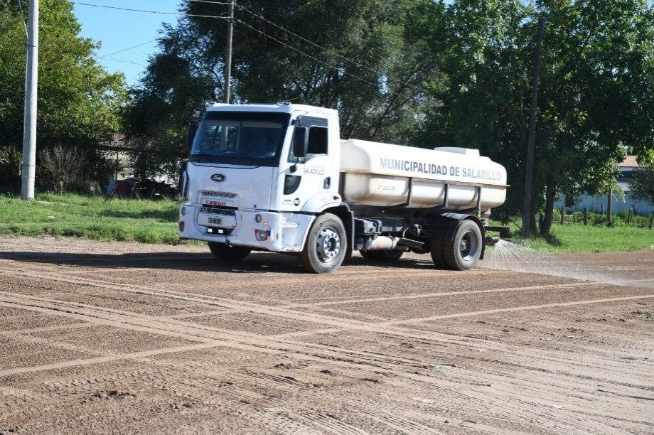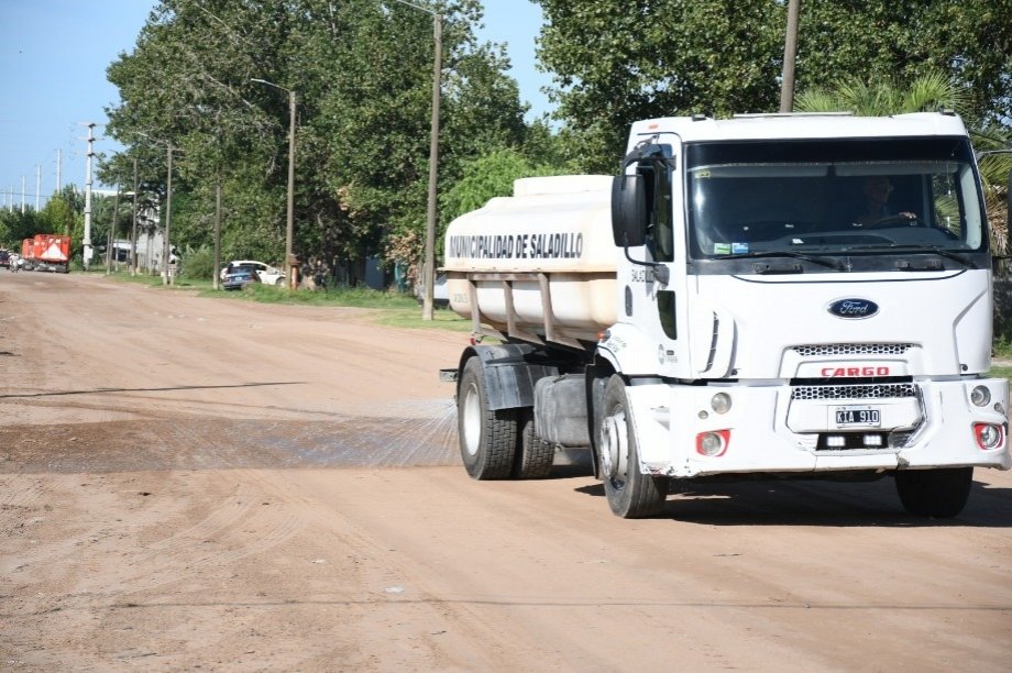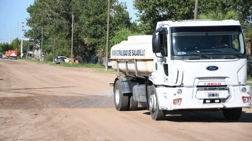 El Intendente Salomón observó el trabajo que están realizando los dos camiones regadores acondicionados para desarrollar este trabajo en las calles de tierra de nuestra ciudad.