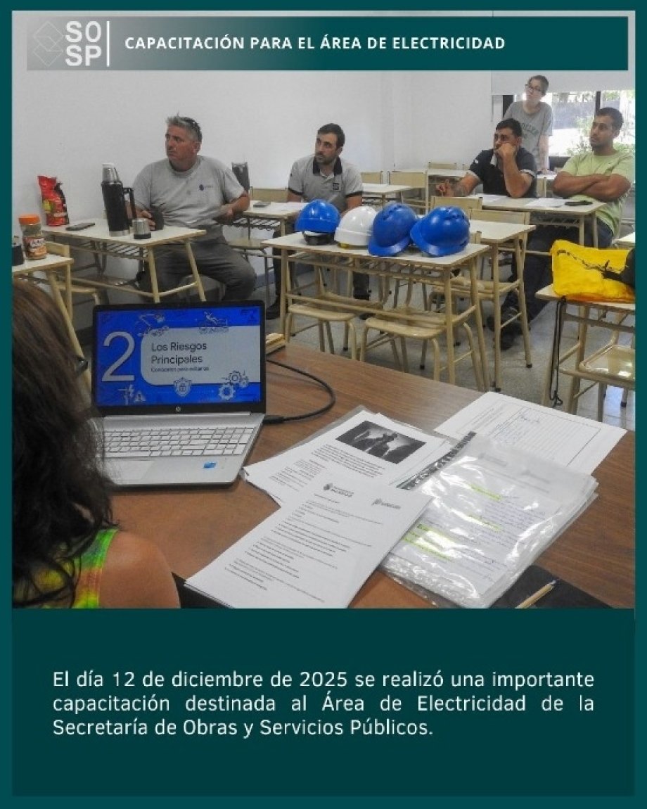 El día 12 de diciembre de 2025 se realizó una importante capacitación destinada al Área de Electricidad de la Secretaría de Obras y Servicios Públicos.