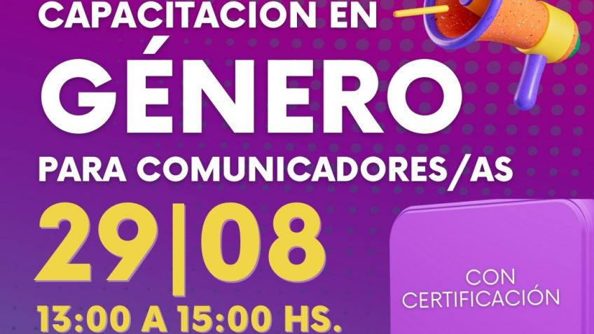 Los interesados pueden inscribirse hasta el 25 de agosto a través del link: https://bit.ly/CapacitaciónGéneroCom o enviando un WhatsApp al 2345-523505 informando medio al que pertenece, nombre, apellido y DNI.