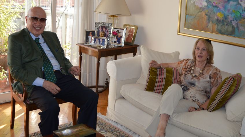 "Es el lunes 26 de marzo del corriente año son pasada las 13hs, estoy en Barrio Capitalino de Palermo a unos pocos minutos de otro barrio emblemático de la capital del país: "La Recoleta", tomo mi celular y llamo al teléfono fijo de su departamento. " A partir qué hora la puedo ir a visitar" pregunto y del otro lado una voz femenina que he escuchado muchas veces desde mi juventud en Saladillo me responde: "Podes venir ya si podes". Confirmo en "en media hora estoy". Ubico el auto en el estacionamiento subterráneo de la Plaza Intendente Alvear, comúnmente conocida como Plaza Francia. Me dirijo a la calle Quintana al 500 (al lado de La Biela), llamo al portero y subo al piso donde está ubicado su departamento. Toco timbre me abre la puerta mi anfitriona me recibe con un "Hola como estas? Qué bien se te ve?" Agradezco pero inmediatamente digo: "A usted se la muy bien, siempre bella, bellísima, y elegante pareciera que no pasaran los años para Ud.". Me dice "Muchas Gracias sos muy amable" y vuelvo agregar: "no es un cumplido, simplemente quiero reflejar la realidad". La mujer que me recibe el 11 de agosto próximo cumplirá 90 años de vida. Nació un día como ese pero de 1928 en Saladillo y se llama Olga Guillermina Gaddi, simplemente Olga para muchos de nosotros y fue la esposa del Dr. Alejandro "Titán" Armendáriz, quién fuera el primer Gobernador de la Democracia Recuperada 1983-1987. Ella sabe que tomo generalmente té y entonces me prepara uno para mí y un café para ella. "Que andas haciendo?" me pregunta y le contesto que al margen de visitarla quiero que me cuente algunas cosas de su vida. Y enseguida comienza una charla distendida. Me cuenta que nació en la Avenida Mariano Acosta (Barrio La 31) en una casona en cuyos fondos había una curtiembre propiedad de su padre. Sus padres eran Nazario Gaddi y Ana Dadone. Me relata su paso por la Escuela Primaria n° 18, Gral. José de San Martín de Saladillo y recuerda con mucho cariño a una de sus maestras María del Patrocinio Pérez de Bianco. Que le gustaba leer poseías y desde la Escuela le hacía leer alguna para las Fiestas Cívicas, recuerda particularmente cuando leyó una en la Plaza Principal sobre San Martín. La Escuela Secundaria la hizo en el Instituto Teodora Sánchez de Atucha de la ciudad de Lobos pertenecientes a las hermanas del Niño Jesús. Viajaba todos los domingo en tren hacia la ciudad de Lobos para concurrir a la Escuela, lo hacía con su amiga Elsa Martínez quien más adelante en el tiempo sería la esposa del Sr. Carlos Oscar Latasa, se recibió de maestra pero no ejerció la profesión de docente, fue finalmente ama de casa y acompaño a quién sería su esposo en la profesión y en la actividad política. No me podía faltar esta pregunta: Donde lo conoció a Titán?" Me dice: " en Saladillo obvio si los dos éramos de allí", le aclaro " quise decir cuando se pusieron de novio?" Entonces me cuenta que a Belisaria Rivera de Thompson(la Madre de Pity Thompson de Etchegoyen) le gustaba organizar fiestas, y en una oportunidad en uno de los Teatros de Saladillo organizo una presentación donde la jovencita Olga Gaddi representaba a "La Cenicienta" ese día en el público estaba presenciando el espectáculo un joven llamado Alejandro Armendáriz ,nuestro "Titán". Dice Olga sonriendo: "Titán me vio y le guste, luego nos pusimos de novio". Me comenta que durante el noviazgo y mientras "Titán" estaba estudiando le escribía muchísimo y, dice que escribía muy bien, además de las cartas de amor refiere Olga que escribía Cuartetas muy divertidas. Todavía atesora todas sus cartas va a su habitación y vuelve con las cartas las cuales me muestra y están perfectamente ordenadas. Me cuenta que siempre "Titán" procuraba verla estuviese donde estuviese, un verano ella había ido a pasar unos días a la casa de unos familiares suyos a la ciudad de Junín y se quedaba el fin de semana, Titán se apareció a visitarla y luego se desato una gran lluvia por los caminos intransitables de aquella época no podía regresar a Saladillo. Los padres de Titán no sabían que él había viajado a Junín para ver a Olga de manera que se transformó en una Odisea poder comunicarse con Saladillo para informarles del imprevisto. Dije que Olga es una mujer hermosa, bella y seguramente durante su juventud ha sido una mujer admirada por los jóvenes de su época, además de Titán obviamente. Le pregunte si alguna vez la habían elegido Reina en algún concurso de Belleza. Me dice "porque me preguntas?" le digo no le voy a reiterar "por lo de su belleza" sino porque una vez vi en el consultorio de "Titán" y sobre sobre su escritorio un recorte de diario con una foto suya con la leyenda" la joven saladillense Olga Gaddi fue elegida" Reina de la Belleza"" entonces me comenta que un periódico local de la época había organizado un concurso de Belleza y la Reina se elegía por votación ,habiendo ella resultado electa Reina. Le digo "Olga no hay preguntas indiscretas en todo caso las respuestas son las indiscretas siguiendo un pensamiento de Oscar Wilde por eso le pregunto algo: Titán era celoso?" Vuelve a sonreír, sonrió muchas veces durante nuestro encuentro y me comenta que cuando se casaron se fueron Córdoba y un día mientras estaban desayunando un hombre que estaba en la confitería del Hotel la miraba, "Titán" advierte la circunstancia y en forma jocosa dice " Recién me caso y ya me quieren sacar a mi señora". Le pido que me cuente como era "Titán"":" El mejor hombre que he conocido en este mundo" puedo percibir de sus palabras el cariño que siente por él cuando lo recuerda y agregaba era muy inteligente, un hombre incansable, muy trabajador en su profesión y en la política. Le gustaba mucho el café 'y se divertian mucho en los bailes de disfraces fundamentalmente para los Carnavales. Me nuestra las fotos de sus viajes con "Titán" por el país y por el mundo y otras cuando Alejandro Armendáriz fue