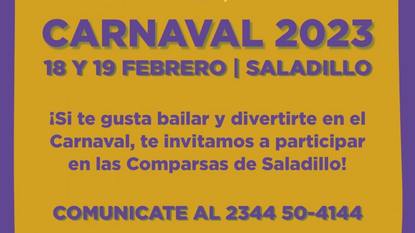 ¡Si te gusta bailar y divertirte en el Carnaval, te invitamos a participar en las Comparsas de Saladillo!