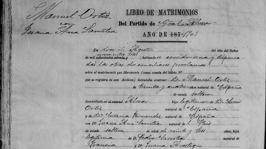 1. Casamiento de Manuel Ortiz y Juana Sarratea (1903).