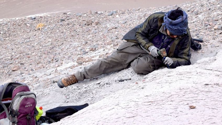 El fósil fue descubierto por los geólogos y geólogas Julieta Suriano, Andrés Echaurren y Lucas Lothari, del Instituto Argentino de Nivología, Glaciología y Ciencias Ambientales (IANIGLA, CONICET-UNCUYO), durante un relevamiento geológico en la Formación Potrero Grande, en una zona geográfica de montañas que se elevan por encima de los 3900 metros de altura.