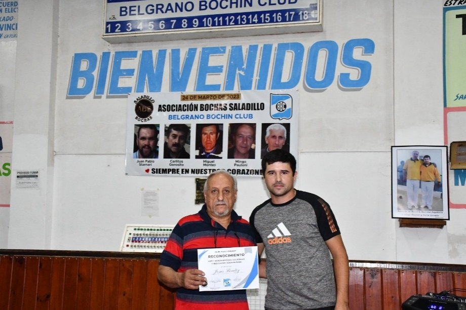El pasado viernes 24 de marzo, en las instalaciones del Belgrano Bochin Club se desarrolló la cena y reconocimiento organizada por la Asociación de Bochas de Saladillo. A dicho evento fue invitado el Intendente José Luis Salomón, quien también participó del acto homenaje a varios bochofilos que formaron parte de la institución.