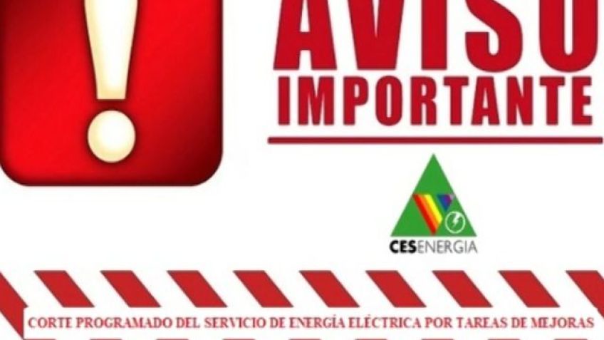 La Cooperativa Eléctrica de Consumo y Otros Servicios de SALADILLO Ltda., informa a los usuarios del servicio de energía eléctrica, que debido a MANTENIMIENTOS EN LÍNEAS DE MEDIA TENSIÓN, el JUEVES 15 de ENERO DE 2026, en el horario comprendido entre las 06:30 y las 08:00 se realizará un corte en el suministro de energía eléctrica, que afectará a los usuarios ubicados en las siguientes zonas: