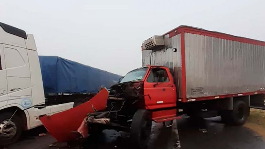 Cuatro camiones protagonizaron un siniestro vial en el km. 61 de la Autopista Ezeiza Cañuelas, dejando como saldo dos choferes heridos.