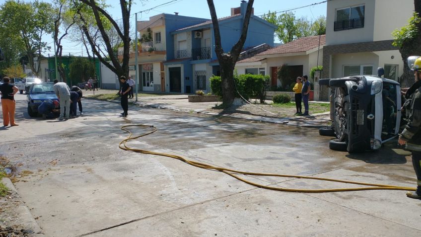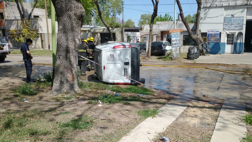Cerca de las 13:00 se produjo un choque y vuelco en avenida Pereyra entre Leandro N. Alem y Almafuerte. Un automóvi Peugeot colisionó con una camioneta Kangoo que volcó sobre la avenida. Ambos circulaban en la misma dirección. Inrtervinieron bomberos voluntarios por derrame de combustible y la avenida permaneció cortada. Efectivos de Policía y Tránsito colaboraron en el lugar. No hubo lesionados de consideración.