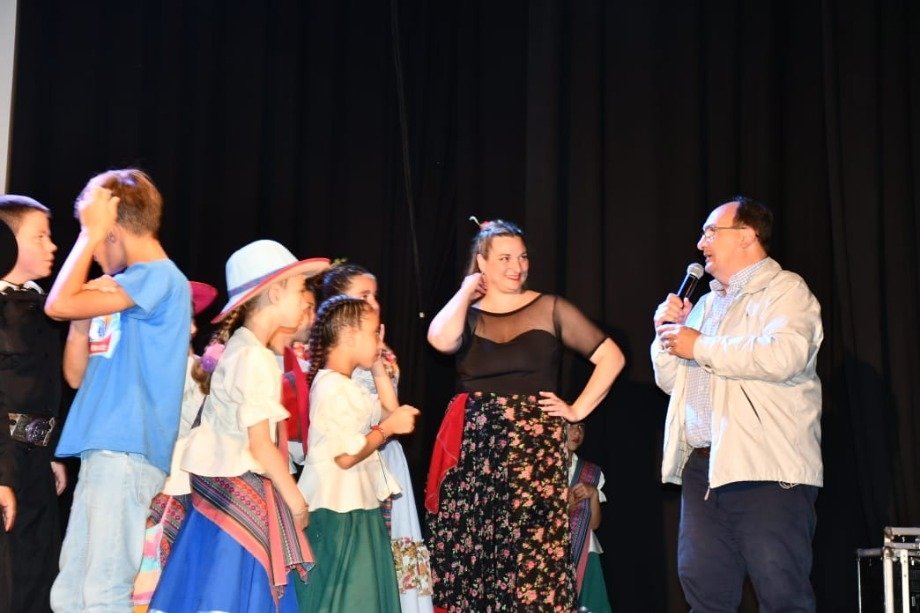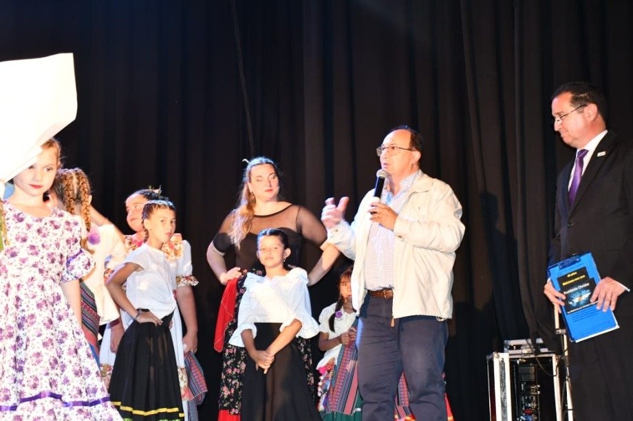 El viernes por la noche en las instalaciones del Teatro Marconi, tuvo lugar el espectáculo de cierre de año de la Academia de Danzas "El Irupé" de la Prof. Lorena Basili. A la misma también asistió el Intendente Municipal.