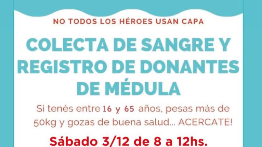 Domingo 3 de diciembre de 8 a 12 en la Municipalidad de Saladillo.