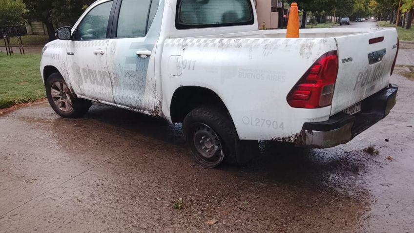 Cerca de las 06:00 se produjo una colisión entre un auto que circulaba por la calle Rojas con un móvil policial que avanzaba por Julio A. Roca. El vehículo menor impactó con la zona derecha trasera de la camioneta que dio un giro y chocó con el cordón de la vereda destrozando el neumático izquierdo. No hubo lesionados.