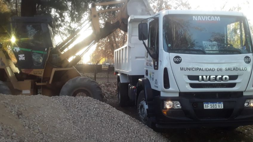 Desde la Dirección Vial municipal se informó que se está realizando colocación de piedra dolomita en todo el sector del predio de la Sociedad Rural de Saladillo.
