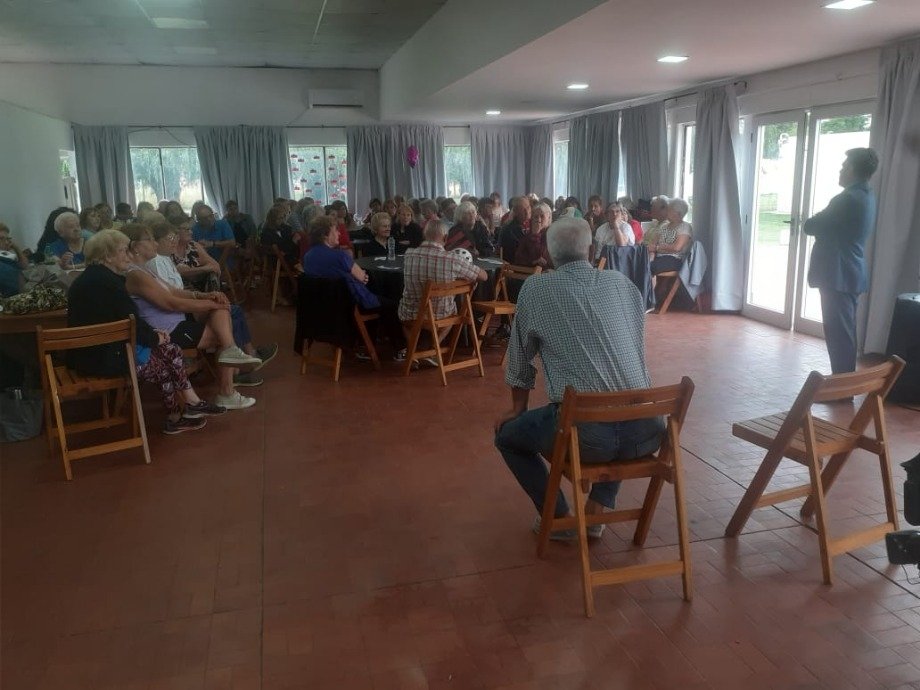 En el marco del desarrollo de actividades de la Colonia de Adultos Mayores en las instalaciones del Club Bancarios del Provincia se llevó a cabo una disertación sobre las principales estafas virtuales y como prevenirlas a cargo del Fiscal Alejandro Civitarese de la Ufij 2 de nuestra ciudad, acompañado por el Secretario de Seguridad Fernando Arrospide.