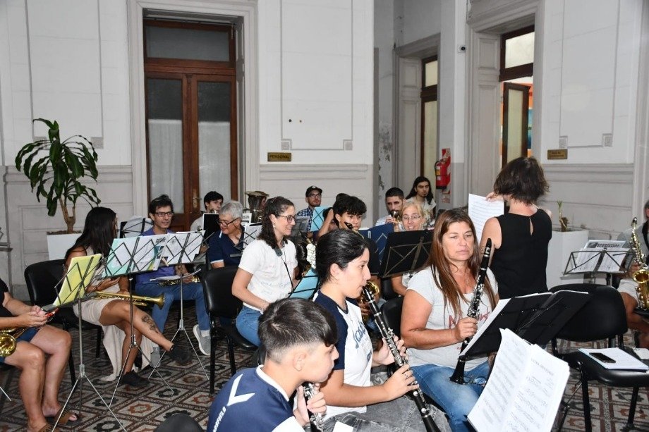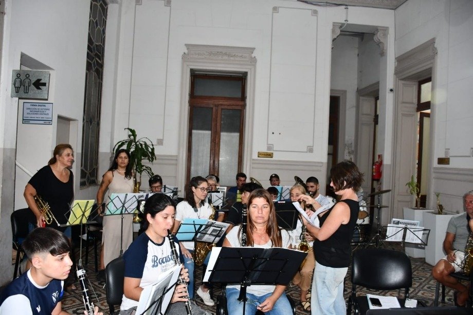 Este Lunes 2 de marzo, en horas de la tarde, comenzaron los ensayos de la Banda Municipal en el hall del municipio con la dirección de la Profesora Julieta Ugartemendia.