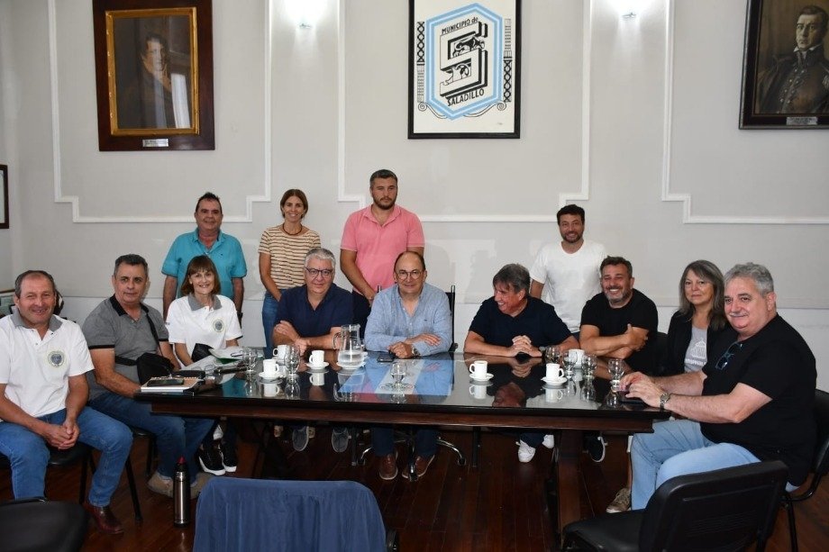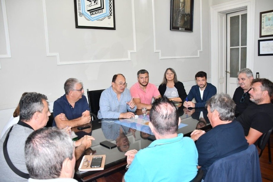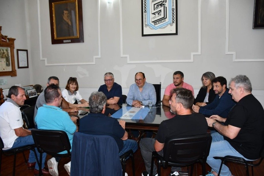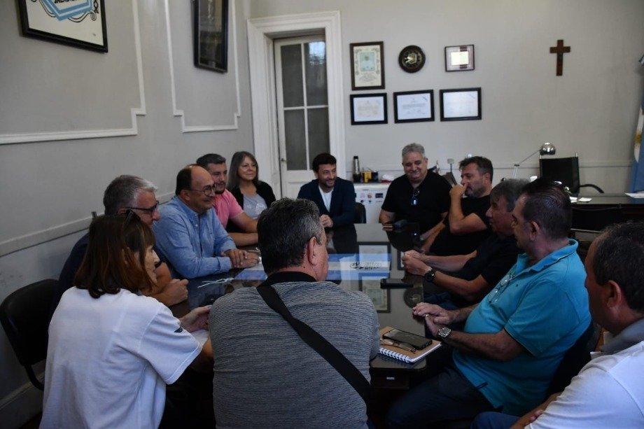 El Intendente Municipal Ing. José Luis Salomón junto con el Secretario de Hacienda Contador Gustavo Ramundo, la Secretaria de Gobierno Viviana Rodriguez, la Subsecretaria de Legal y Técnica Dra. Yamila Artigas, el Subsecretario Jefe de Coordinación de Gabinete Ezequiel Tarabú y el Director de Recursos Humanos Federico Arzola recibió a la conducción de la Federación de Sindicatos Municipales Bonaerenses FESIMUBO, encabezados por el histórico dirigente sindical y Secretario General Ruben Cholo Garcia.