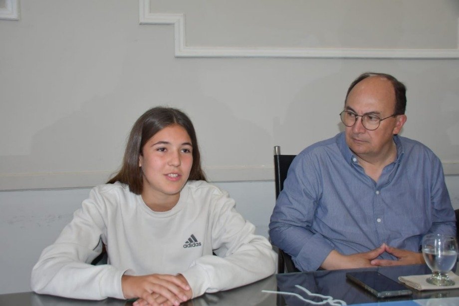 El Intendente Salomón junto con el Subsecretario de Deportes Nicolás Tosca recibió a Antonia Costa que se ha destacado como futbolista al jugar en el Club Atlético River Plate y haber integrado la Selección Argentina que resulto subcampeona en la Copa Conmebol tras caer por penales en Asunción con el equipo de Brasil.