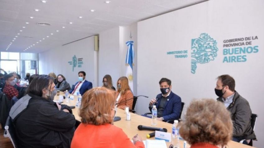 Kicillof se reunió esta mañana con autoridades de los gremios que representan a trabajadoras de la administración pública en el marco de la paritaria 2022. Además de los gremios docentes y de los que representan a estatales de la ley 10.430, están contemplados los judiciales de la ABJ y los profesionales de la salud de Cicop. Adicionalmente, a partir de octubre, se informó que los montos cobrados en concepto de asignaciones familiares subirán un 50 por ciento en relación a los vigentes en septiembre. "Los tramos continuarán ajustándose automáticamente, tal como se acordó en la paritaria de marzo", indicaron.